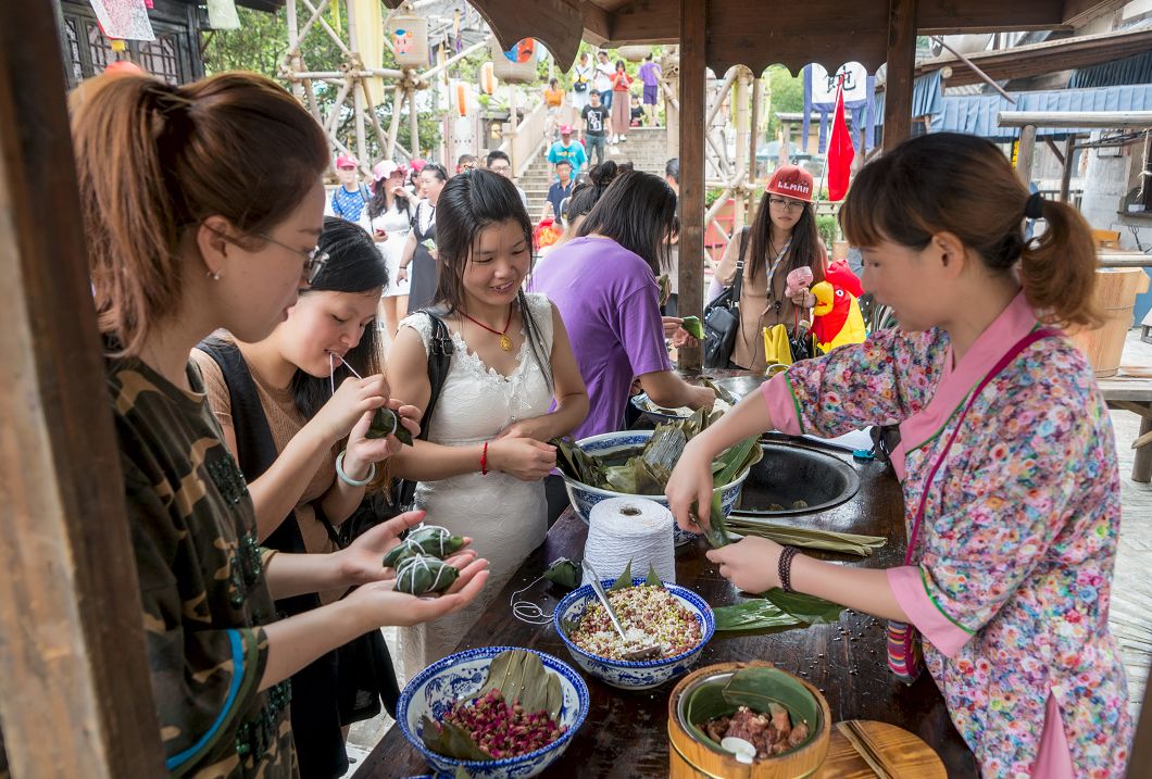 此外,象山影视城还推行“一票过两节”的节日福利,凡在端午节当天窗口购票的游客(非团队客),即可免费获得象山影视城第五届泼水节开泼仪式体验券一张,感受影视城浓浓的“粽”爱之情。