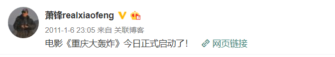 早在2011年,导演萧锋就发微博宣布项目启动,那时候片名叫《重庆大轰炸》。