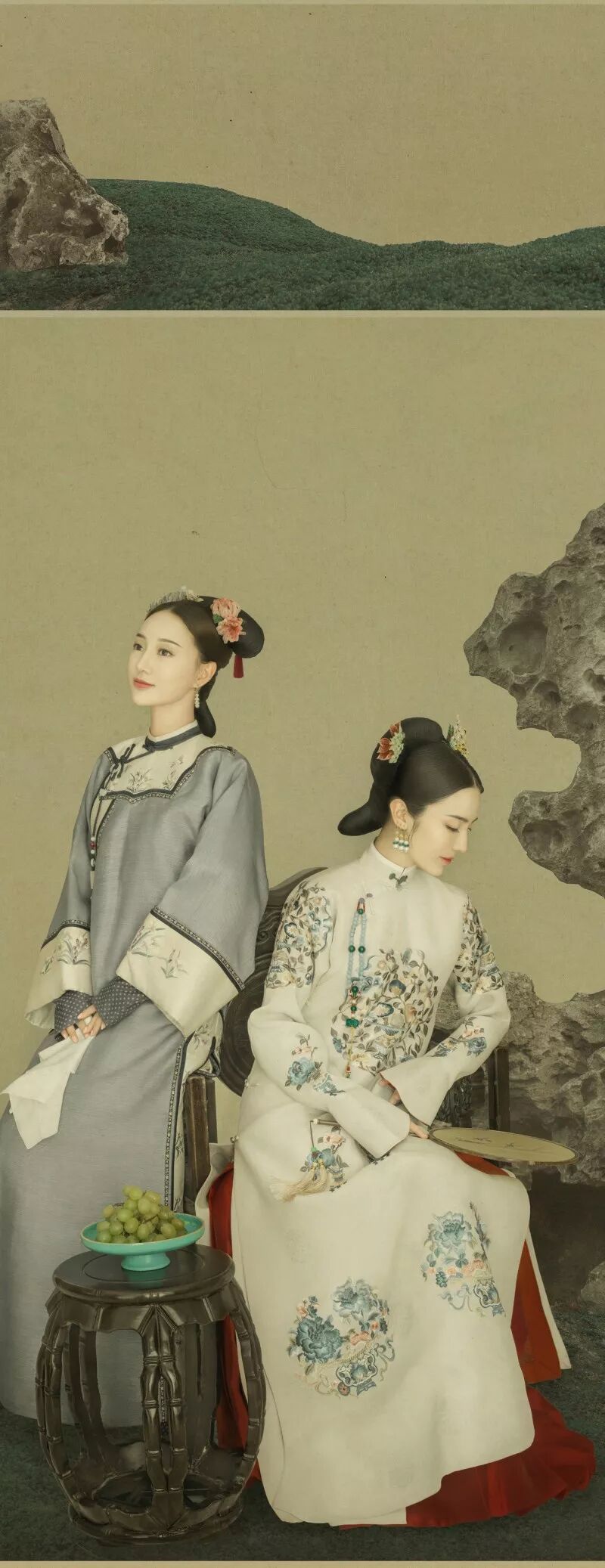 主题中,富察皇后身着常服,温婉仁德。或莞尔一笑,或温柔注视,或垂首遐思,将其对璎珞的喜爱展露无遗。璎珞则贴身相随,在春夏之交的季节里,在没有倾轧与晦涩的一方洁净里,在姐妹之谊的温暖中,迎着晓风习习,似乎空气中也充满美好与希望。