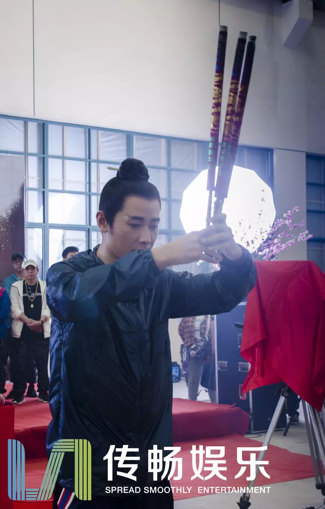 只见罗晋身穿宝蓝色盔甲,头发高束顶上露出饱满额头,身形俊朗,一袭古装扮相非常帅气。身旁除了有其他演员外,还一大块白板,当然这些都完全影响不到罗晋的演技发挥,从他的肢体和神态来看都非常的自然。