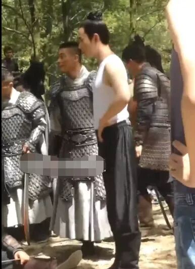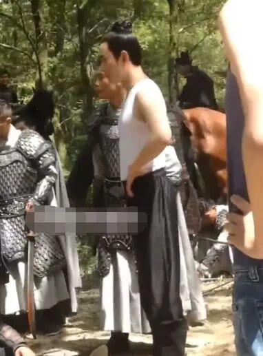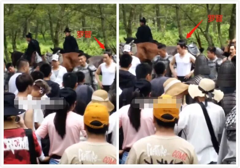 网友拍到罗晋在休息时穿背心降暑一幕,画风超滑稽。片场有些混乱,除了有剧组工作人员还有很多群众演员。在这么炎热的天气下大家都扎堆在一起讨论开会,确实非常的辛苦。