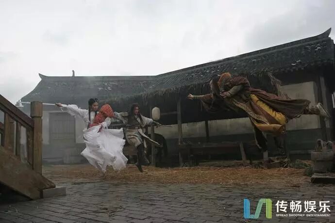 不过两人拍戏时默契十足,刘亦菲拍打戏时衣决飘飘,即使裙摆已被地上的泥染黑,但还是很有美感。
