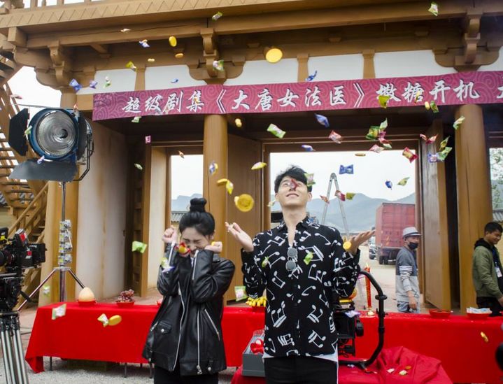 开机当天,出品团队精心安排甜蜜的撒糖环节,而这一环节的设置是还原了唐代新人结婚的“撒帐”习俗。两位“新人”主演在现场接受众人的撒糖祝福,一时间现场甜蜜指数爆表,引得主创团队与在场粉丝连声欢呼。不仅如此,周洁琼和李程彬还将祝福与超大“福利”撒给了主创团队,以此来表示对整部剧集的祝愿。