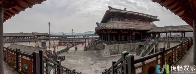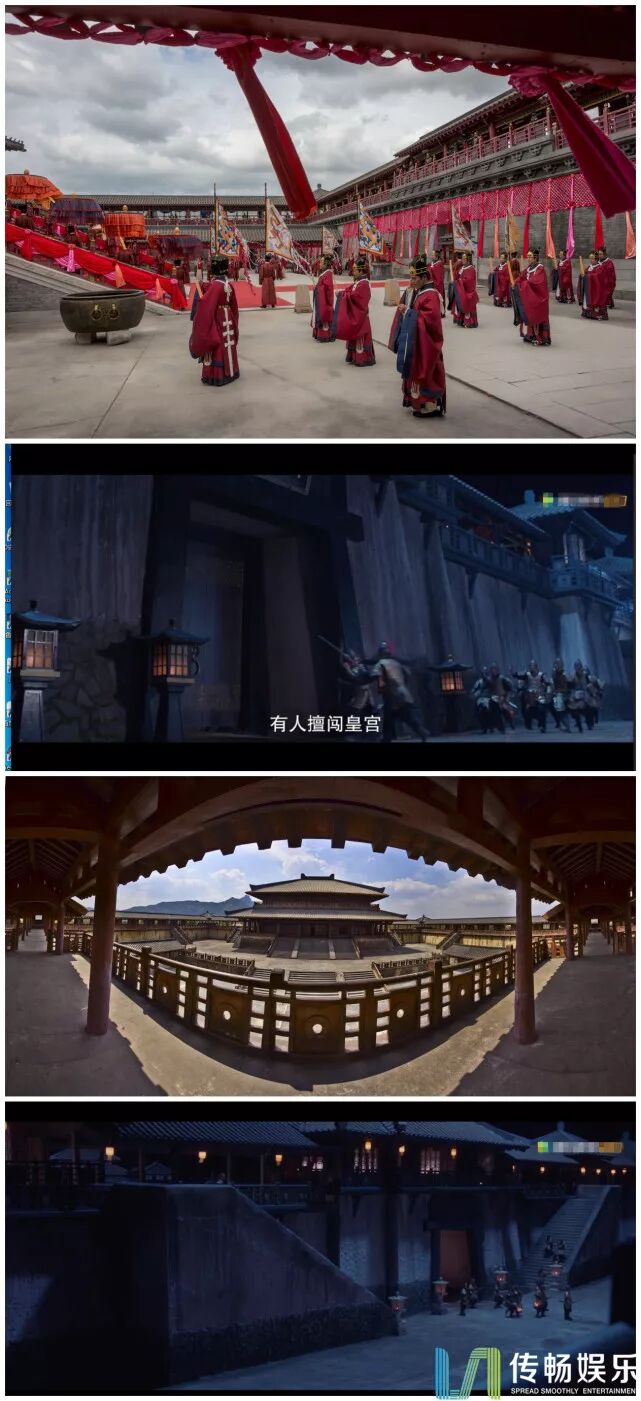 众臣朝拜和卫兵互宫的实景,广角镜头下的桃园行宫更是静谧大气