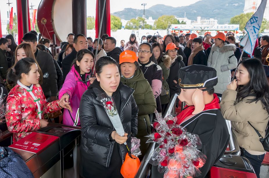 猪年送祝福,八戒鲜花赠美人。为了让游客有更好地游览体验,在节日中得到关怀,组织景区演艺人员扮成猪八戒角色,为到场游客送上鲜花,也为小镇女职工送上花的问候。游客表示,“第一次被猪八戒送花,实在太惊喜了!”