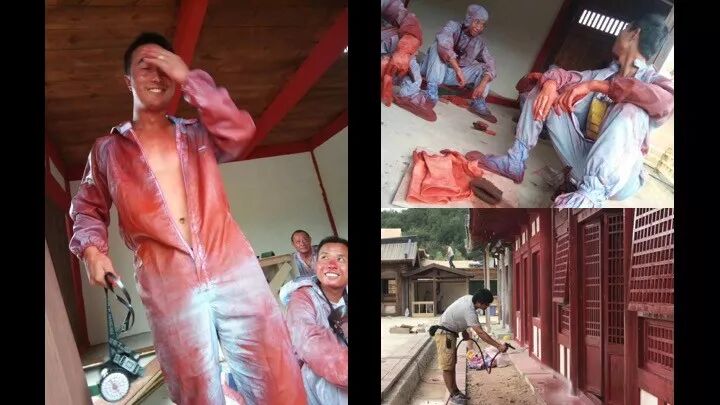 包括在木板上反复地调试,还要在阳光下去做对比,寻找出最符合我们想象的唐朝的样子。这次我们没有用油漆。