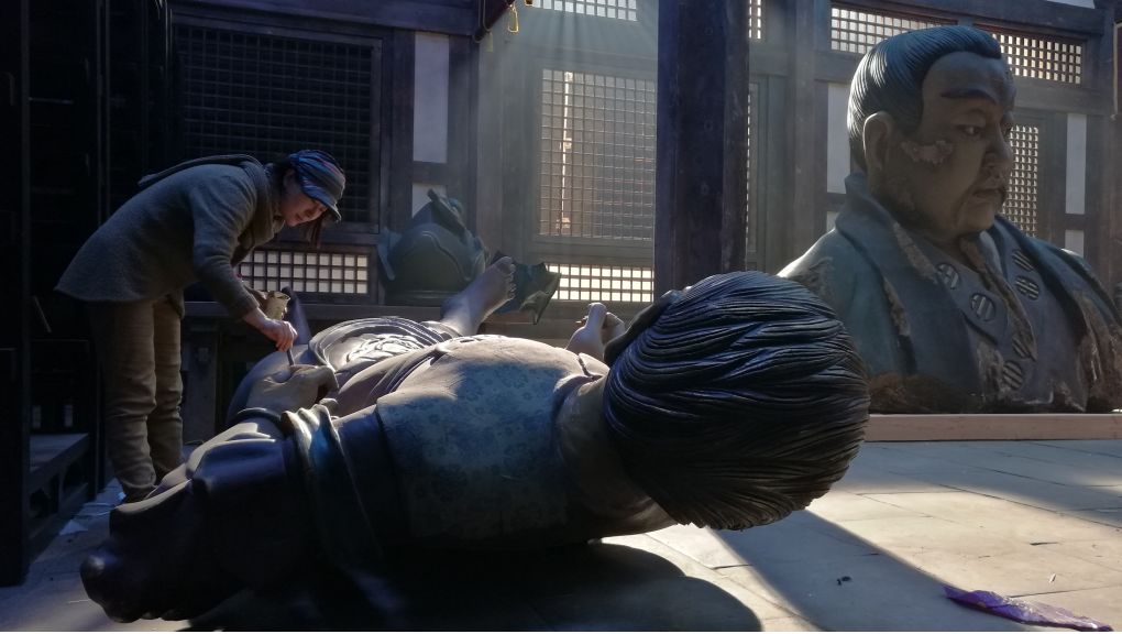 还有一些就不太幸运了。在摄影棚里面我们建造的这些大殿也好,各种装置也好,最后都要面临拆除和消失的命运。