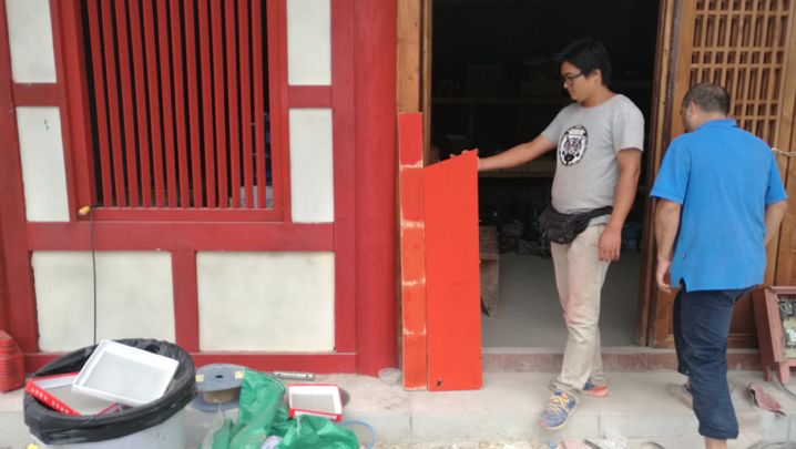 他在北京的时候就跟我们一直在说,我的活儿非常细非常细非常细,然后我们就信了。然后把他带到了象山,在楼下的这个铁皮房子里面,他们有四五个人,制作了三个月。大家在剧里面看到的这些非常细微的微缩模型,都是他们用手一点点拼接而成,用的材料全部是木材。