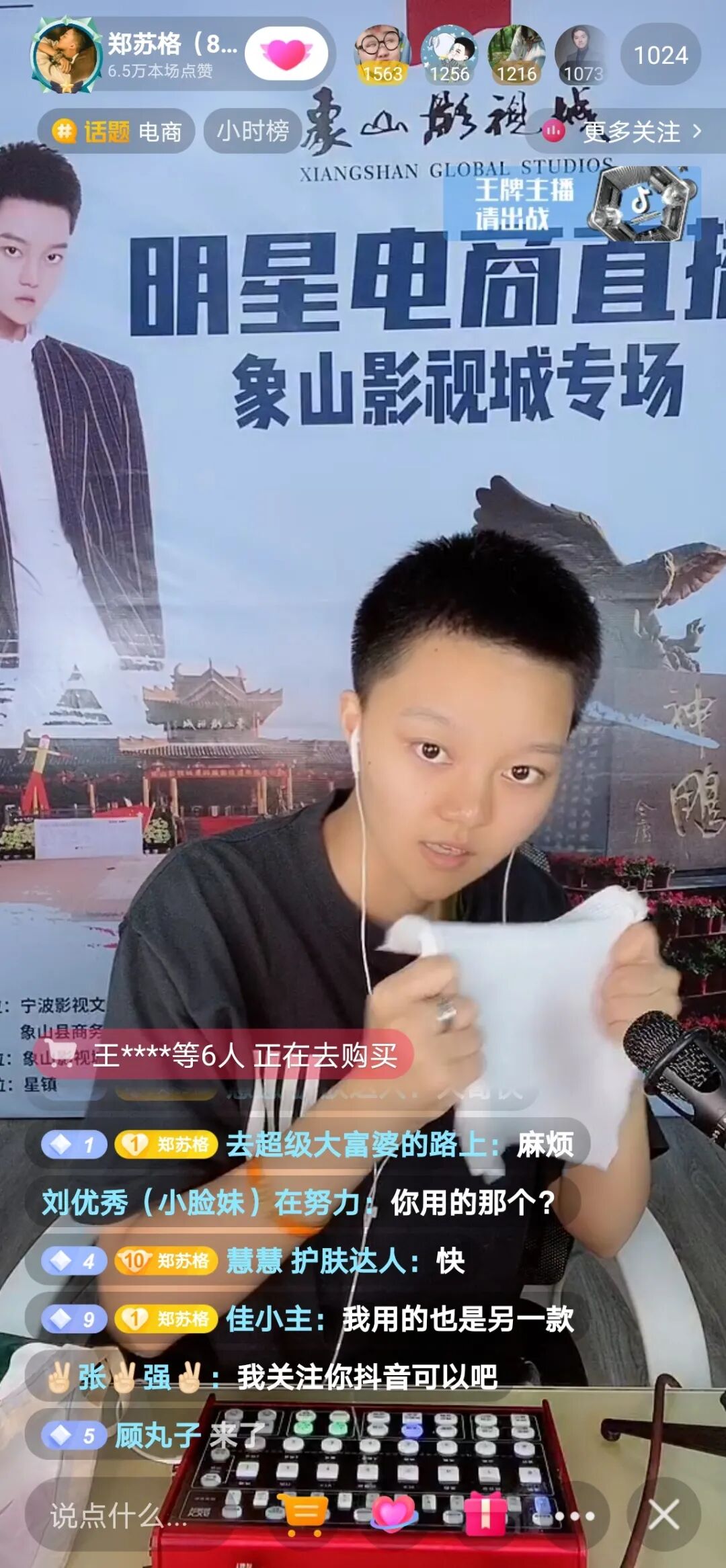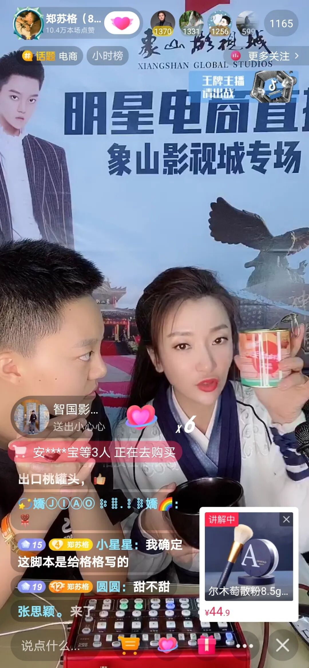 直播分为上半场美妆场和下半场吃货场,期间穿插派送象山影视城文创产品等截屏福利、好物秒杀等互动环节。郑苏格一人撑起美妆场,当场示范、亲自上脸,洗脸巾、散粉、素颜霜、卸妆油,每一种都评论好评一片。