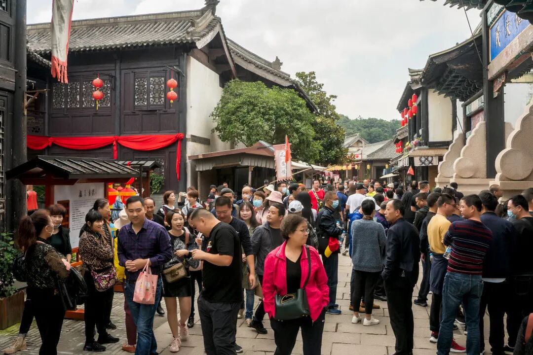 市民旅游日半价游活动的推出也迎来了象山影视城国庆假期节后的游客旅游小高潮,游客们在景区内看美景、吃美食、偶遇明星、拍照留念的同时换装游、沉浸式剧本杀、绝活绝技表演等景区活动产品受到游客追捧。