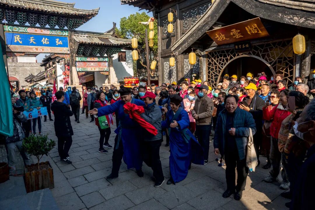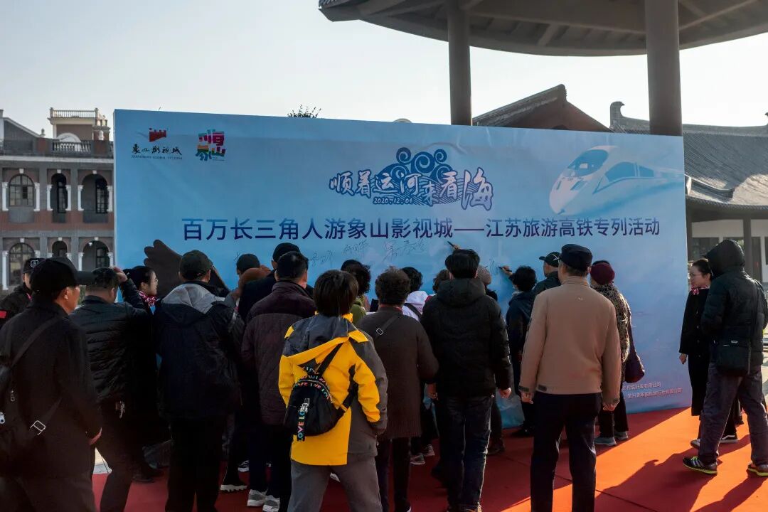 今天(12月4日),象山影视城迎来“顺着运河来看海”百万长三角人游象山影视城—江苏旅游高铁专列首发团的400名游客,并为他们举行欢迎仪式。