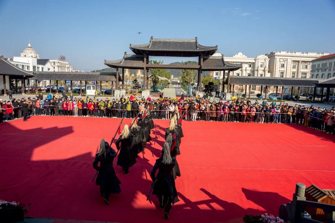 欢迎仪式在象山影视城神雕广场举行,襄阳城城主郭靖携众亲朋为游客带来了精彩的开城迎宾系列节目。令江苏游客大开眼界,现场掌声如潮,热闹非凡。