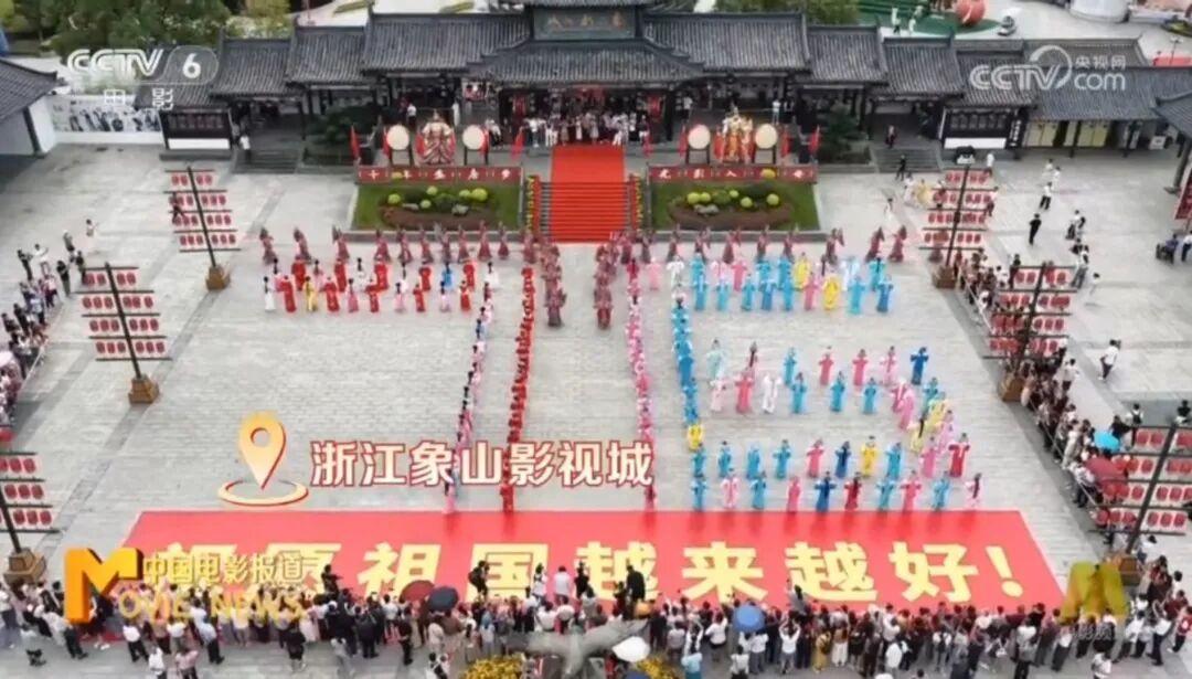十一假期,浙江象山影视城举办第26届影视嘉年华。以“影视+”为核心,结合越剧等非遗文化,吸引游客前来体验。国庆节当天,200余名越剧爱好者排成“76”字样,演绎《穆桂英挂帅》《天上掉下个林妹妹》等越剧经典曲目,唱响对祖国的祝福。