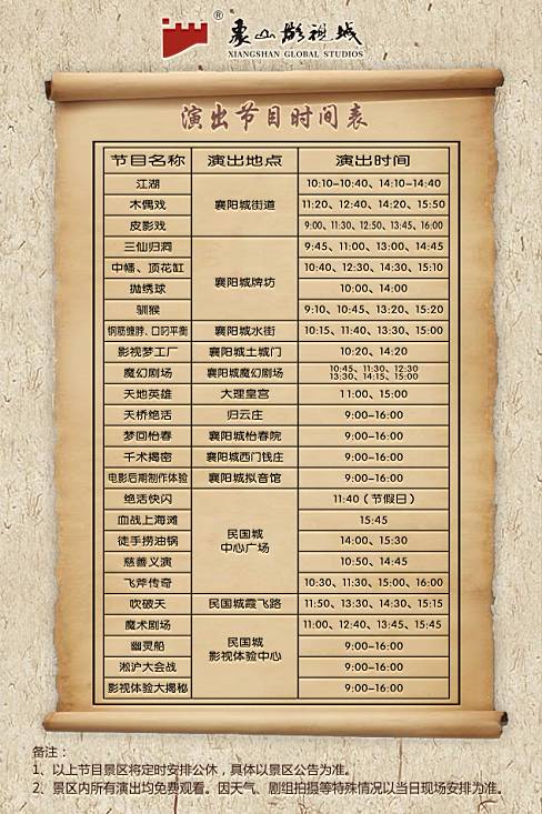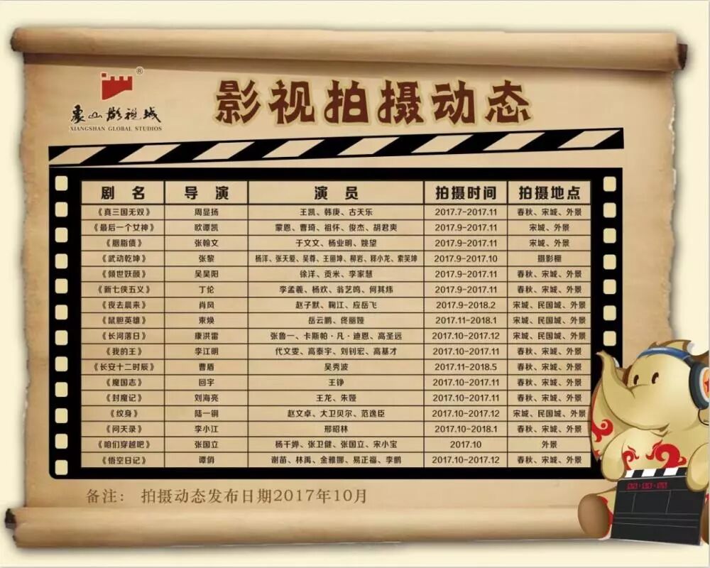 今日在景区内拍摄剧组如下,其他在外景地拍摄: