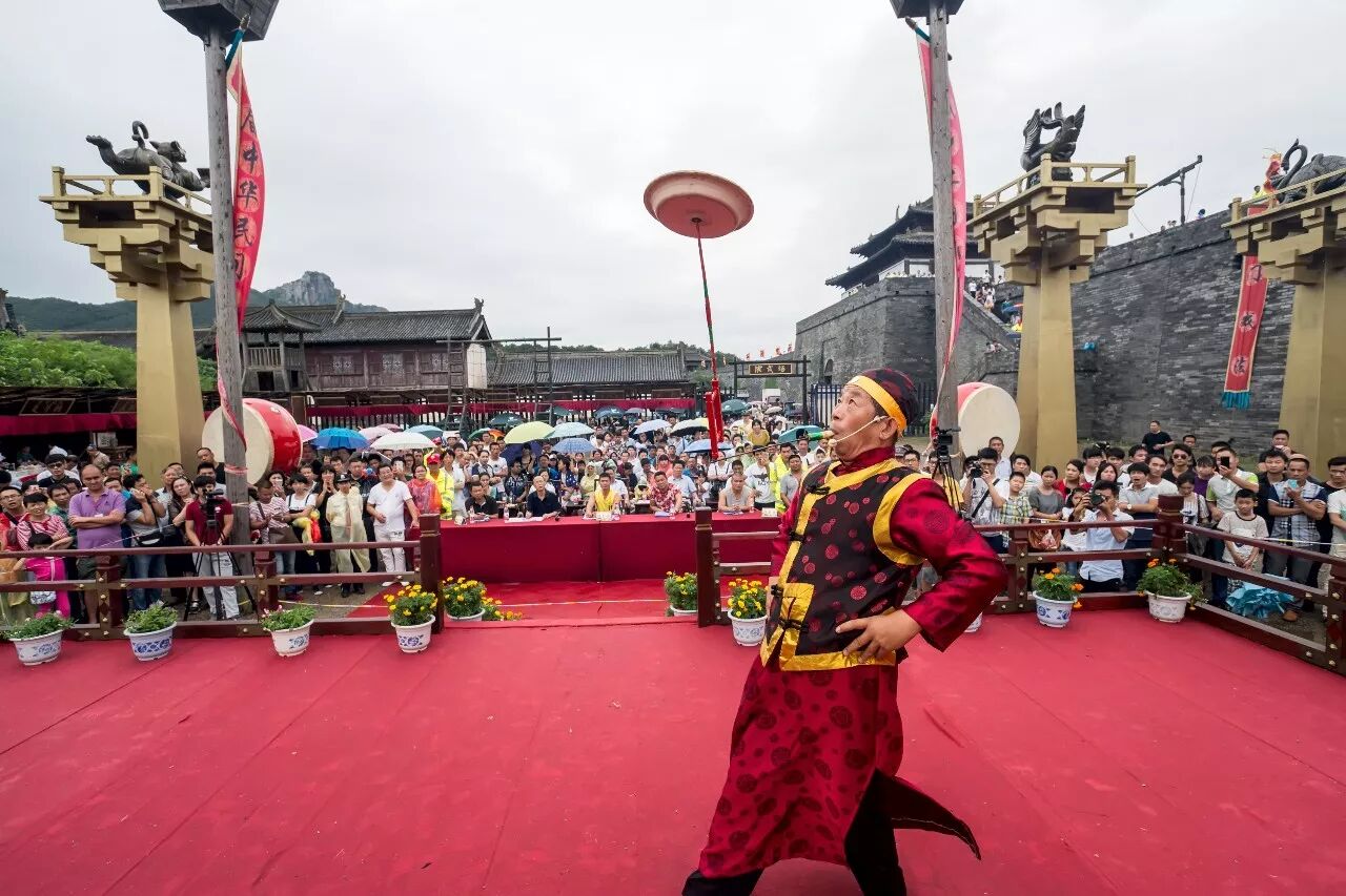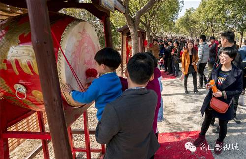 新的一年,辞旧迎新,象山影视城浓浓年味滚滚来。在景区北大门,40米长8米高的灯笼墙上,大红灯笼高高挂起,红艳艳、圆鼓鼓,加上裹红布、放鞭炮、挂中国结、贴对联、题牌匾等趣味活动齐力助阵,满眼喜庆祥和。新年的锣鼓敲起来,新春的歌曲唱起来。盘鼓迎宾、开城送福,从新年的第一天起,就要红红火火!