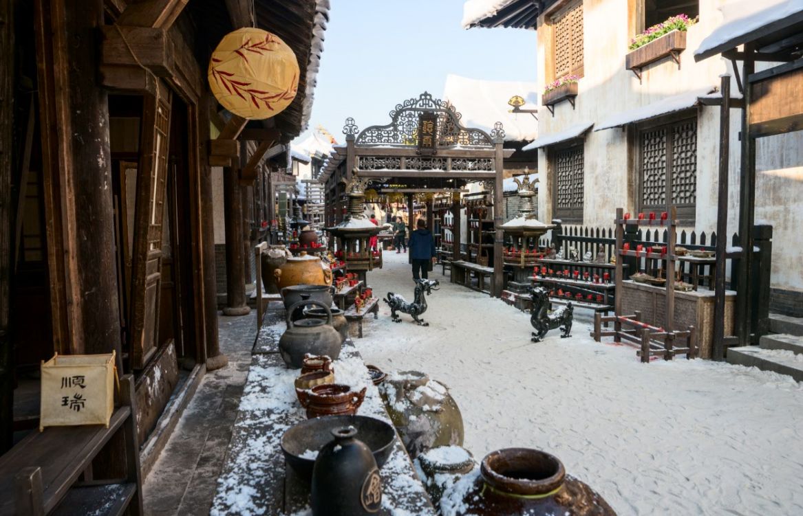 新年的喜庆不一定是火红色调。都说“瑞雪兆丰年”,象山影视城也加入了南京、杭州、四明山下雪的队伍,襄阳城内纷纷扬扬下起“大雪”,将城墙、城门、大帅府、牌坊、南溪桥街道、屋顶等处尽白了头,把朋友圈里“好多地方都下雪了,在我们这地方只会下雨”的烦恼,变成了“我在南方的艳阳里。襄阳城内大雪纷飞,结伴与心爱的人一起赏雪景,走着走着就体验了一把一起白了头”的甜蜜。