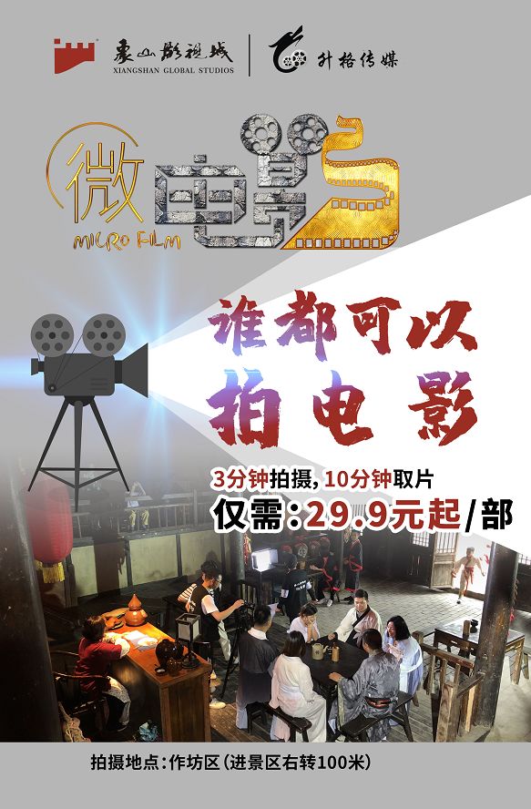 来象山影视城拍摄一部微电影,圆梦演员梦!换装走秀、游客栈情景剧、古风唯美短视频MV,民国、宋代、春秋、唐朝多部剧可选,更有吊威亚等大片项目供你选择。