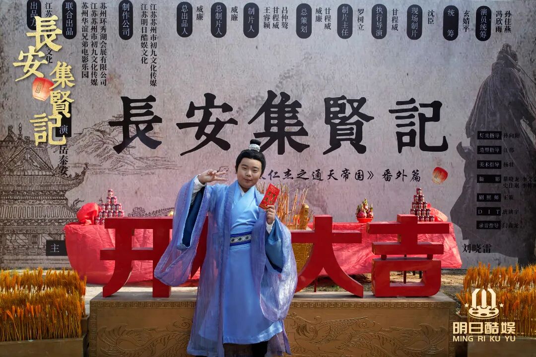 昨日上午,电影《长安集贤记》在象山影视城举行开机仪式。该电影由江苏明日酷娱影视文化出品,苏州华谊兄弟电影乐园、江苏苏州市初九文化传媒、苏州环秀湖会展公司联合出品,江苏明日酷娱文化、江苏苏州市初九文化传媒制作,导演岳泰安执导,甘程威担任执行导演,威廉担任总出品人及总制片人,王睿颖、甘程威、吕仲骜担任制片人,威廉、甘程威担任总策划,罗树立担任制片主任,吴梓剑、赵泓顺、陈裕青、刘小小、郭熙运、闫蕾、薛天睿、 张振江、刘晓雷、冯奕鸣、邓梦奕主演。